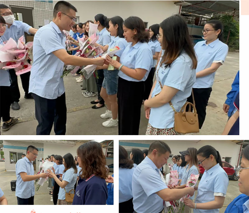 कर्मचार्यांच्या परिश्रमपूर्वक प्रयत्नांना मान्यता देताना कंपनीने आज कर्मचार्यांची बैठक आयोजित केली आणि कंपनीतील माता असलेल्या महिला कर्मचार्यांना कार्नेशन सादर केले.