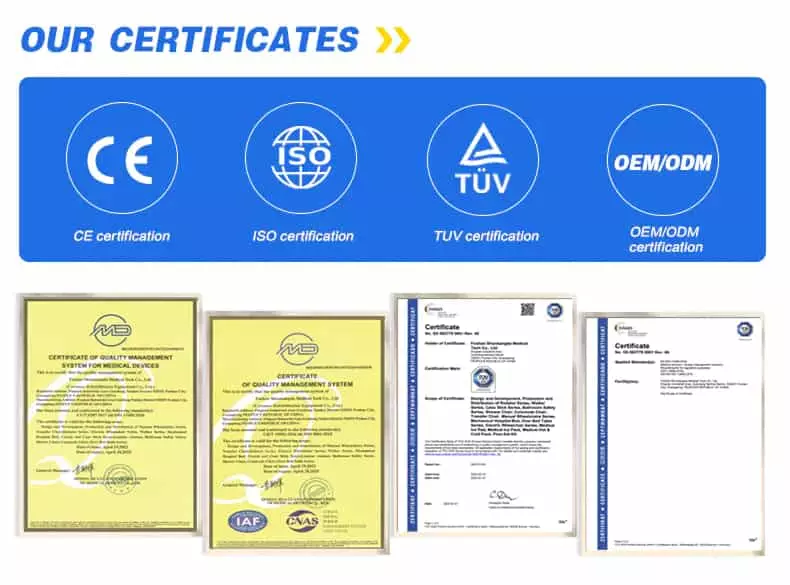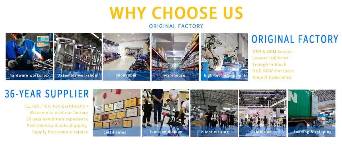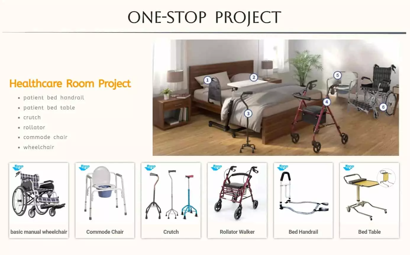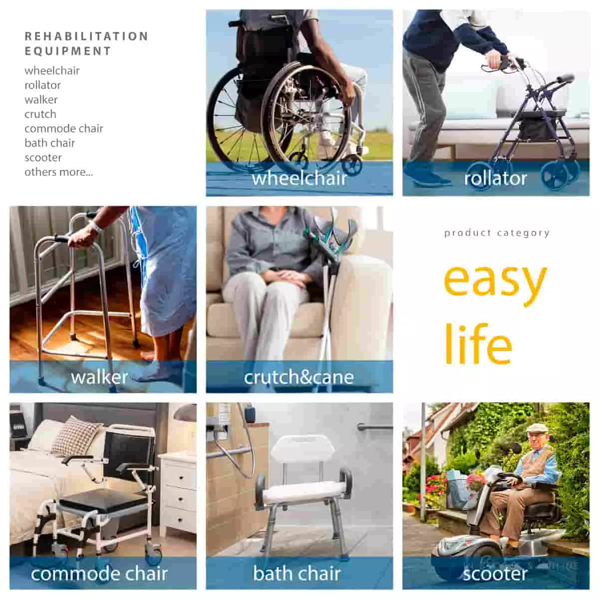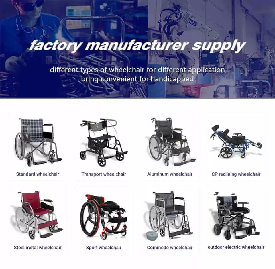 आम्हाला उत्पादने OEM आणि ODM पुरवतो Sतेल व्हीलचेअर, ॲल्युमिनियम व्हीलचेअर, पीओव्हर व्हीलचेअर,पअल्कर, सीरच, वॉकर रोलर्स, Commode खुर्ची, शॉवर खुर्ची,रुग्णालयातील बेड, स्कूटर, रोबोट आणि इतर मेड टेक पुनर्वसन उपकरणे,